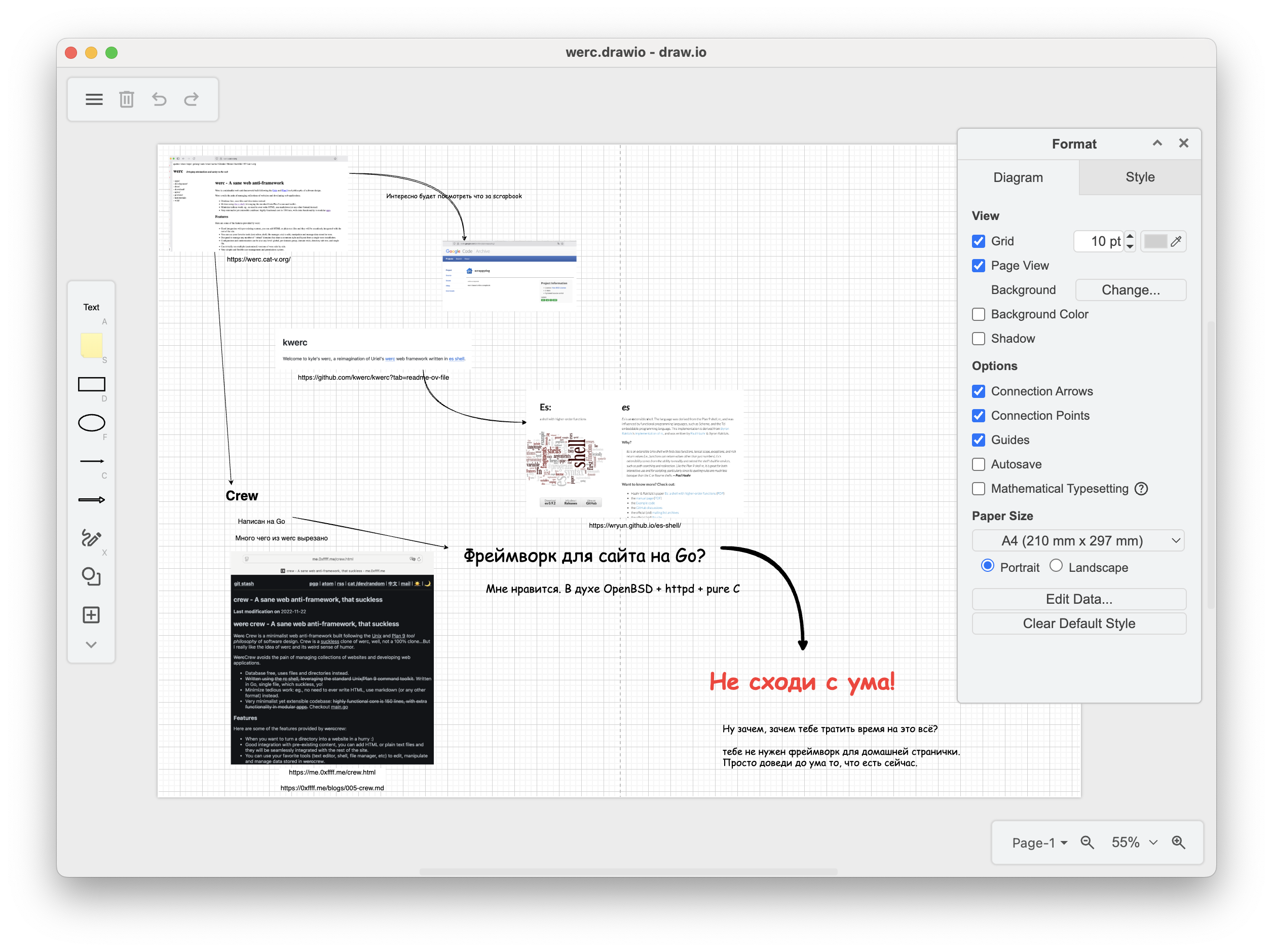 Drawio - знаком многим, но чисто утилитарно - для рисования бездушных схем в стиле globohomo. Многие его знают потому, что он встроен в confluence. Но drawio прекрасно работает отдельно. Есть офлайн десктоп-приложение2.